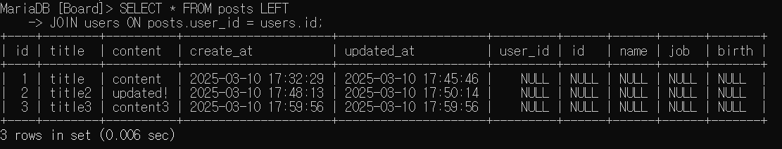 SELECT * FROM posts LEFT <<왼쪽에 붙여서 출력해줘 일반적인 join방법