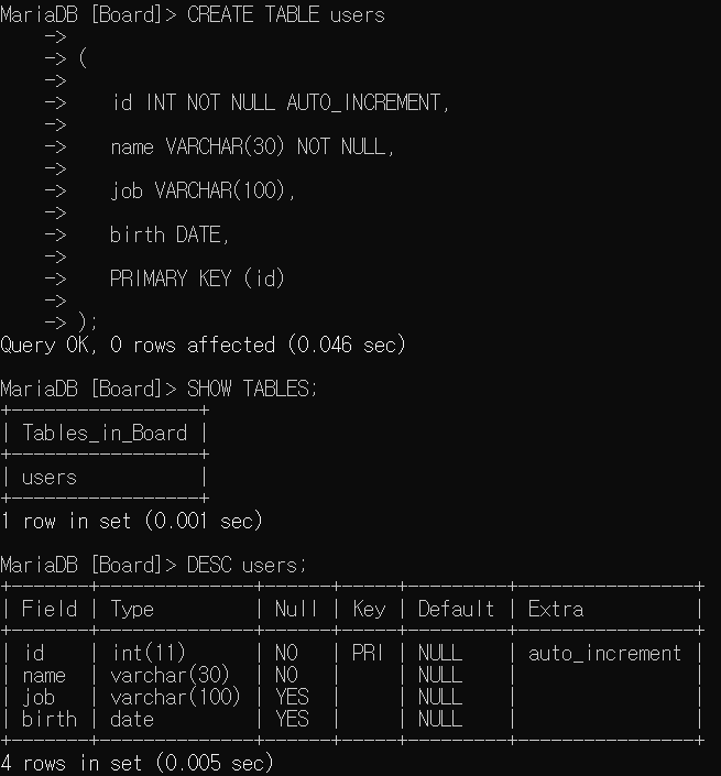 ** DESC는 DESCRIBE의 약어로, 테이블의 구조를 확인