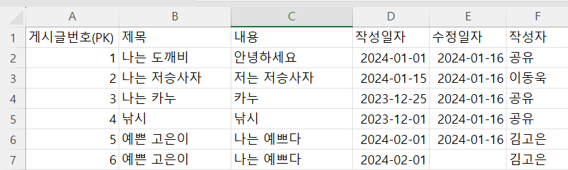 //- 사용자 테이블을 보고 게시글 데이터를 확인 X