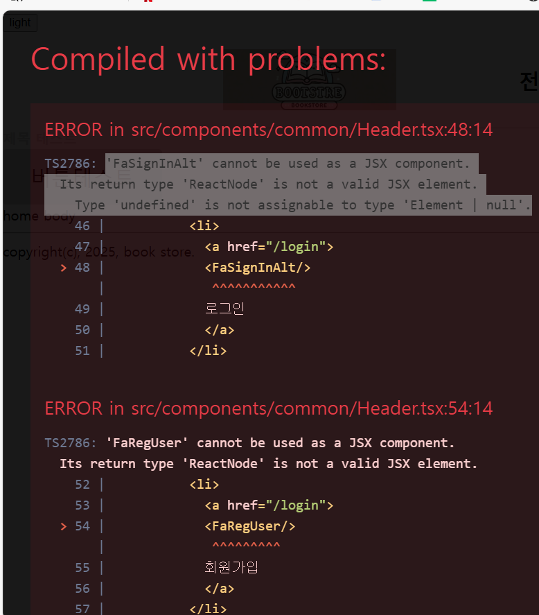 변경 후 react-icon을 구버전으로 변경함 -> 성공