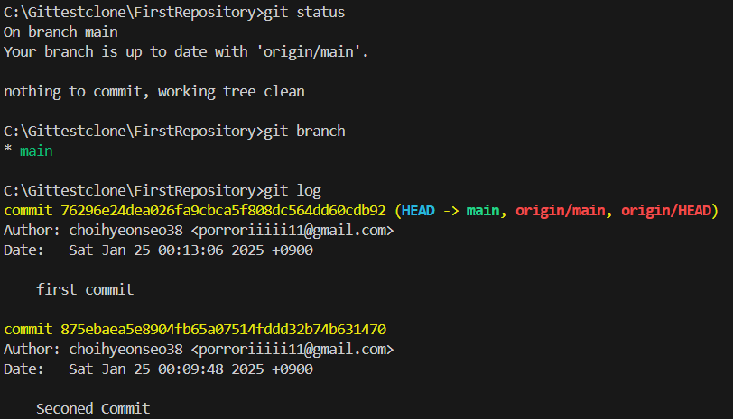 - git branch는 브랜치의 종류 및 지금 어떤게 메인인지도 보여줌