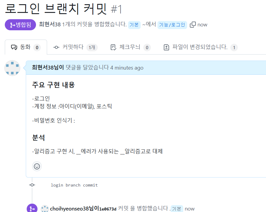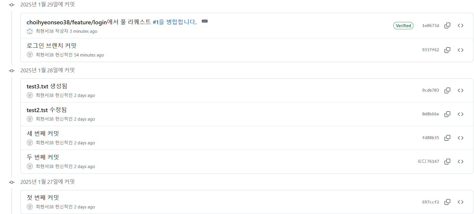 ❗️필수 포함 내용 : 커밋 히스토리 화면 캡쳐, pr&merge 실습 화면 캡쳐
